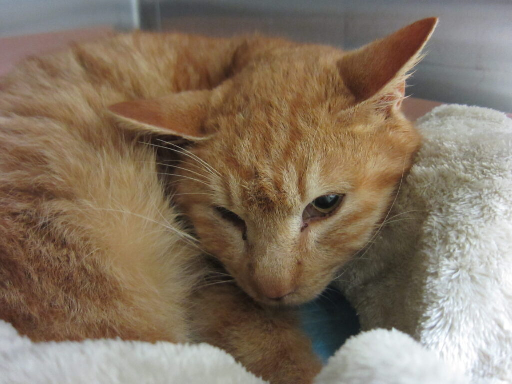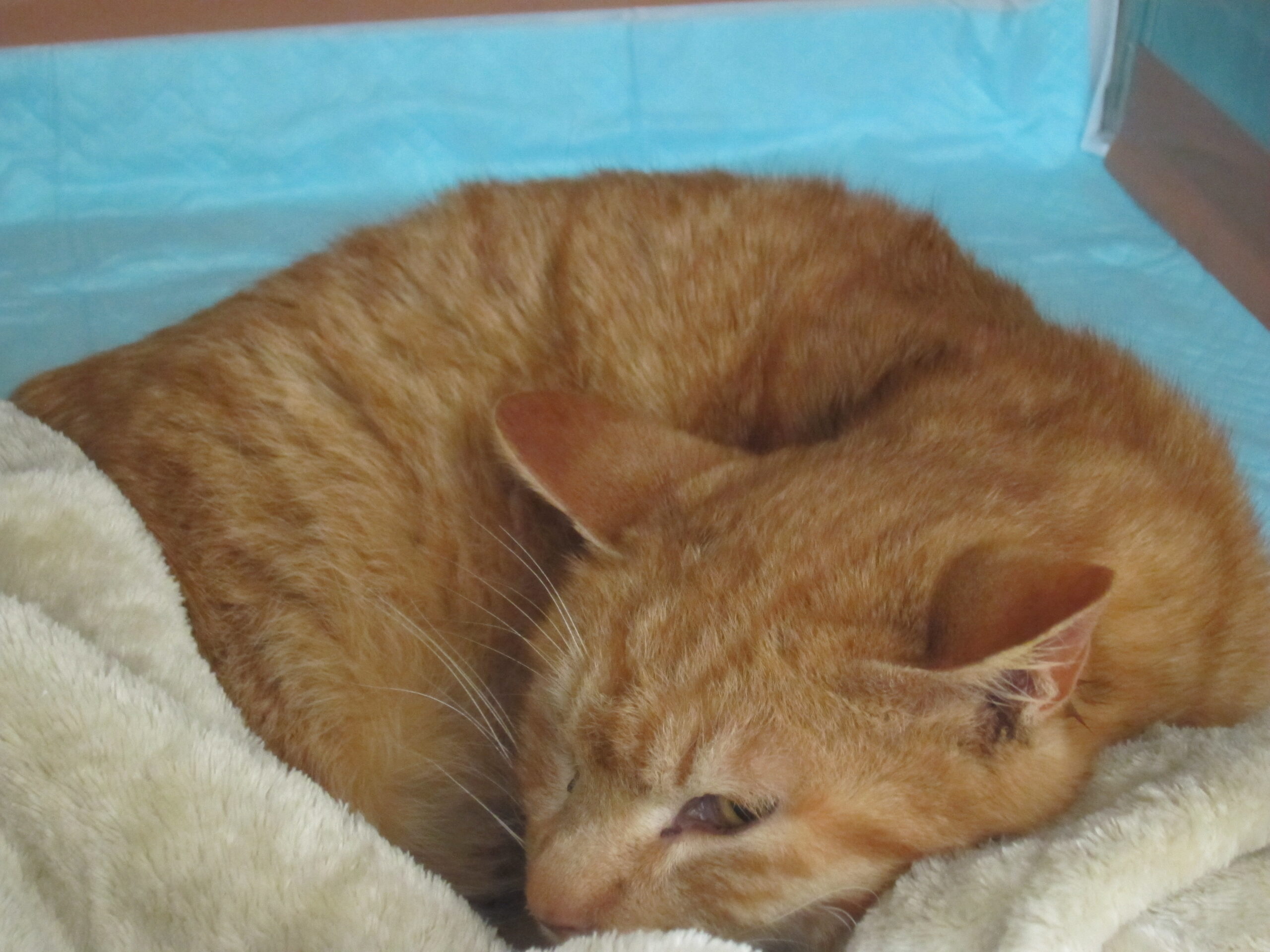 東鷹栖3線15号付近路上で衰弱し動けなくなっているところを保護された迷子猫です。