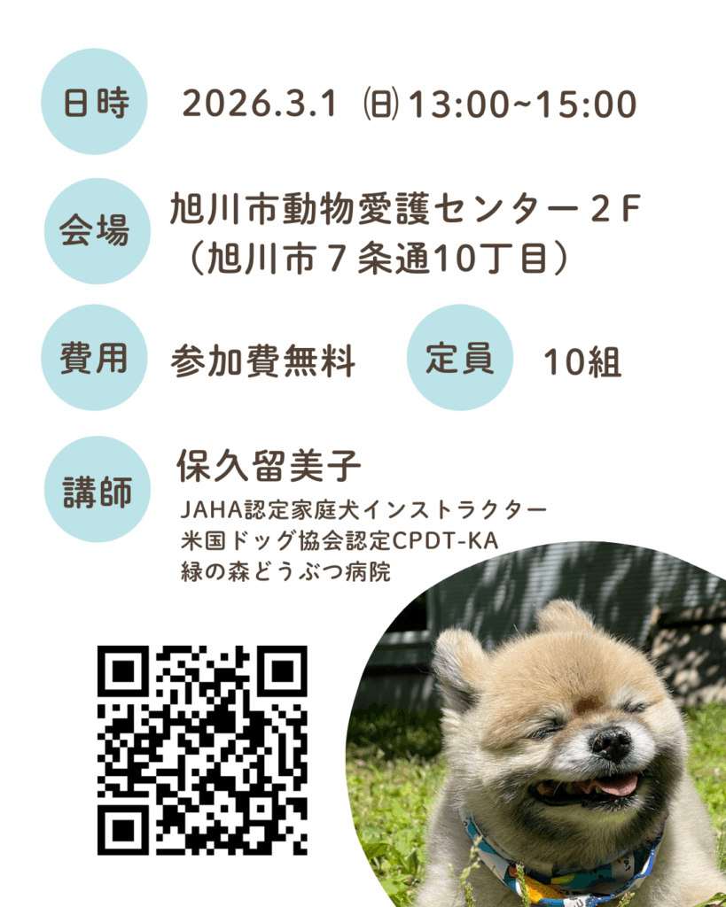 令和8年3月1日あにまある2階ホールにて初心者向け犬の飼い方教室を開催します。 犬を飼い始めたばかり、またはこれから飼う方などで、犬の飼い方がよくわからない、悩みがあるという方は是非参加してみてください。 詳しくは